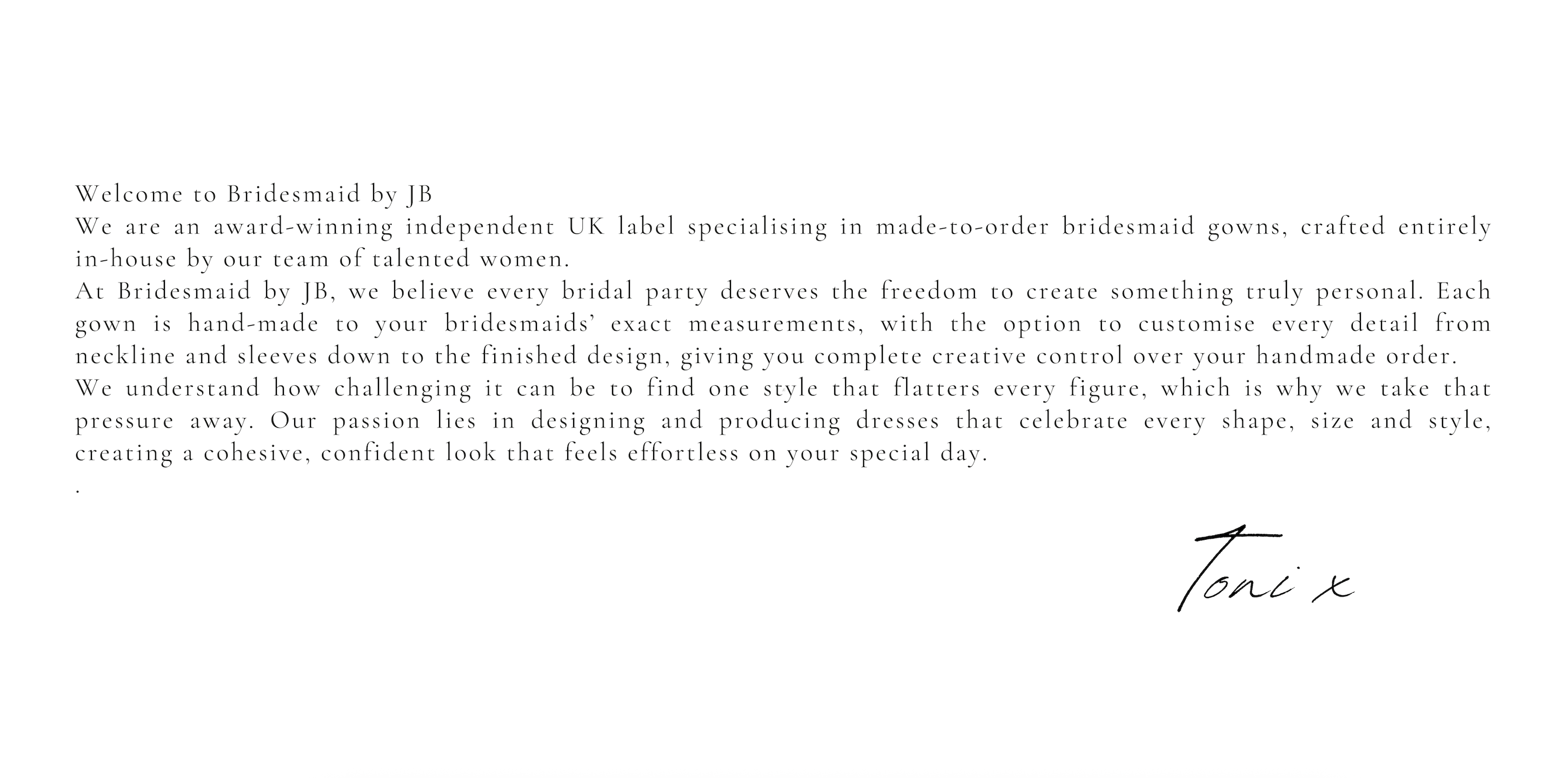 Step into the world of timeless, made-to-order bridesmaid design. Where every stitch, colour and detail is created with care by our in-house team.
